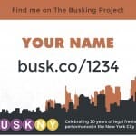 New Yorkers carry less cash every year, putting traditional busking at risk. With an increasing number of audience members having to ask ‘do you take cards?’, buskers are beginning to modernize. Using The Busking Project’s digital platform, busk.co, they can print and display signs directing passersby to their profiles. There, people can donate to the busker via PayPal, become a ‘fan’ and stay in touch.