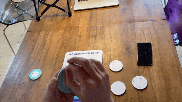 Your audience unlocks their phone (this won’t work on most phones’ lock screens), taps their phones against a disk, they “confirm” the tip, and that’s it. You can see that in the gif above, it takes just THREE SECONDS between the physical tap and me clicking the “confirm” button.