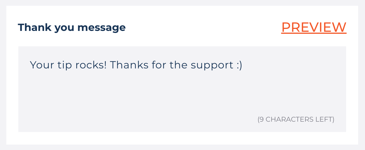• personalise the pre-tip and post-tip messages your tippers will see,
