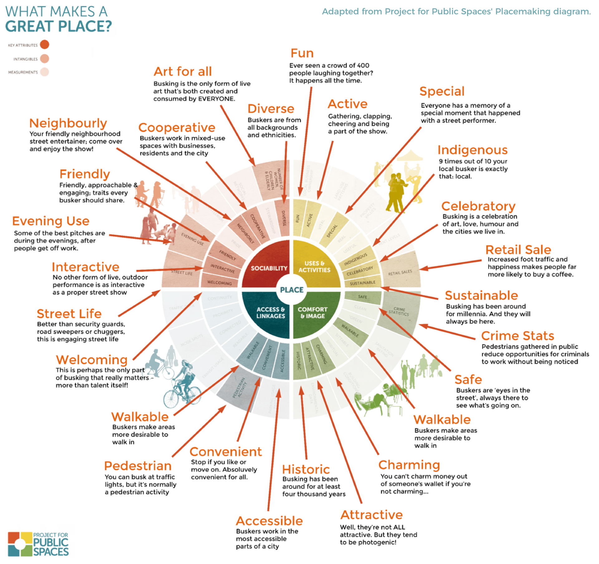 Buskers are way more important than just being a good show. They are important “placemaking” elements too. Let me explain.
