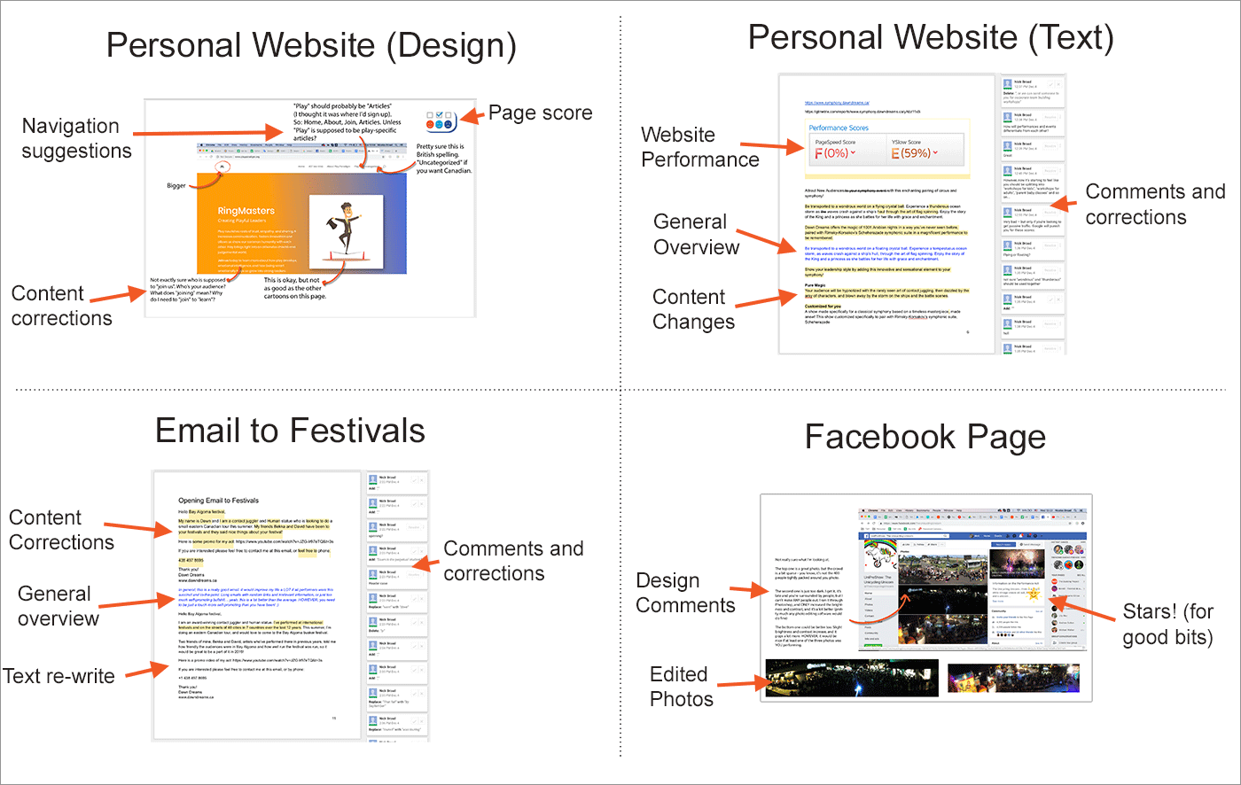 I will use my extensive experience hiring street performers to make your online profile — Facebook, Instagram, website, CV, bio, promo video(s) and emails — better for festival and event producers.