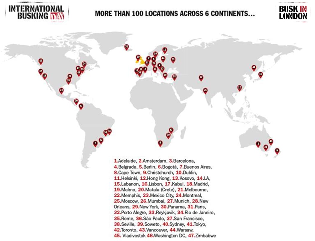 International Busking Day takes place on Saturday 23 July in 100 locations across 6 continents. The Busk In London Festival takes over London’s iconic Trafalgar Square on Saturday 23 and Sunday 24 July. For more information visit www.buskinlondon.com.
