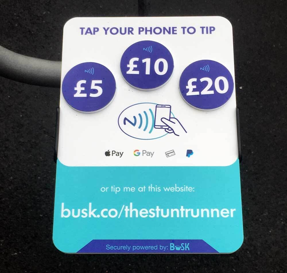Another innovation was that these boards should be so inexpensive that a busker could afford to display several at the same time. That way, people could tip from where they’re standing, and the busker could process multiple, simultaneous cashless tips, meaning no more queueing for the card machine.